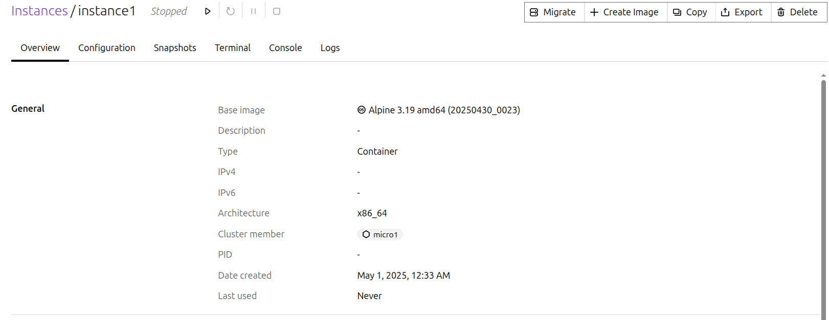 Navigate to the overview page of the selected instance, and click on the Migrate button in the top right corner.