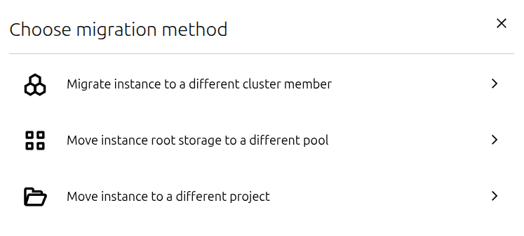 Within the move modal, click Move instance root storage to a different pool to view available storage pools to move to.